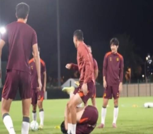 U23国足亚洲杯决赛前最后一练队内氛围轻松,时不时传来笑声
