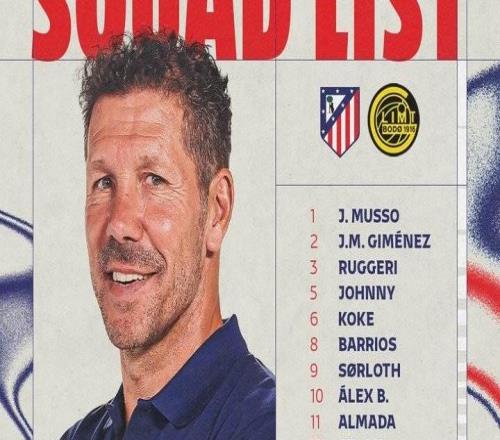 北京时间1月28日,马竞官方公布了欧冠主场对阵博德闪耀的大名单,格列兹曼缺阵,阿尔瓦雷斯、瑟洛特在列。守门员:1...